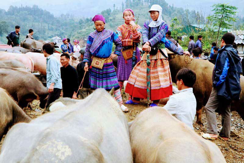 ethnic minority people who still retain their cultural traditions, colorful costumes and local